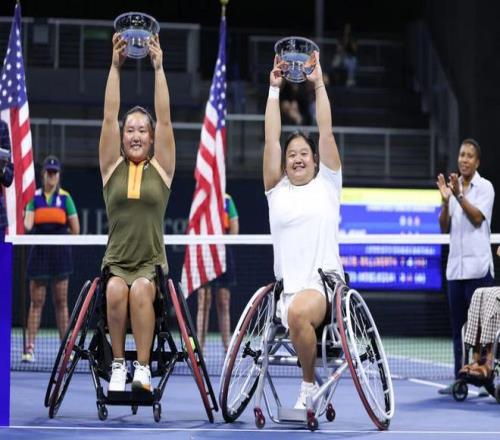 下午进行的轮椅女双决赛中,参赛的四位选手有三位是中国运动员(李晓辉、王紫莹、朱珍珍)。最终,李晓辉/王紫莹组合2比0(6比4、6比3)击败朱珍珍/上地结衣组合,成功卫冕轮椅女双冠军!
